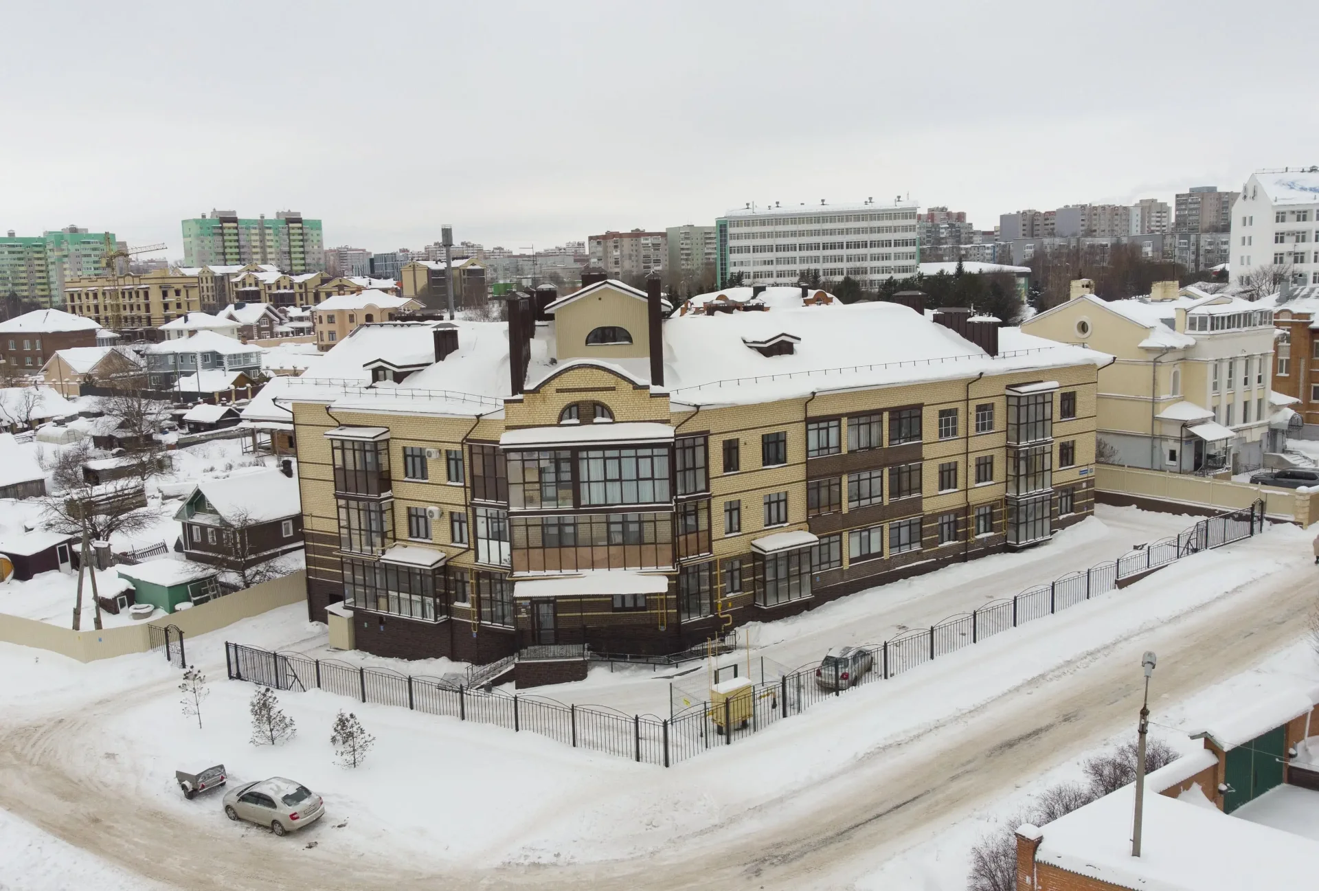 В этом году наша компания построила 3 малоэтажных кирпичных дома, с облицовкой из дерева, в исторической части города по адресу: улица Бурмагиных, дом 29А, корпус 1, корпус 2 и корпус 3.