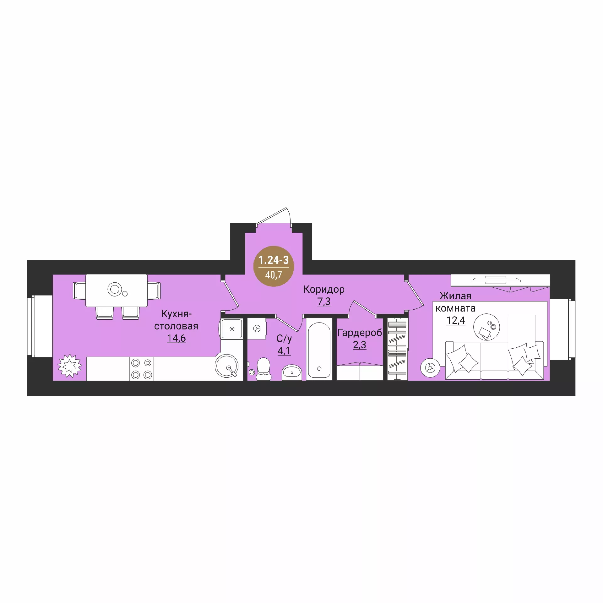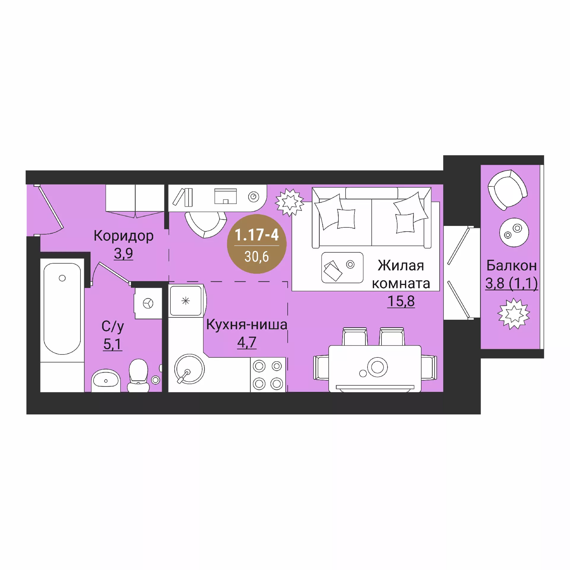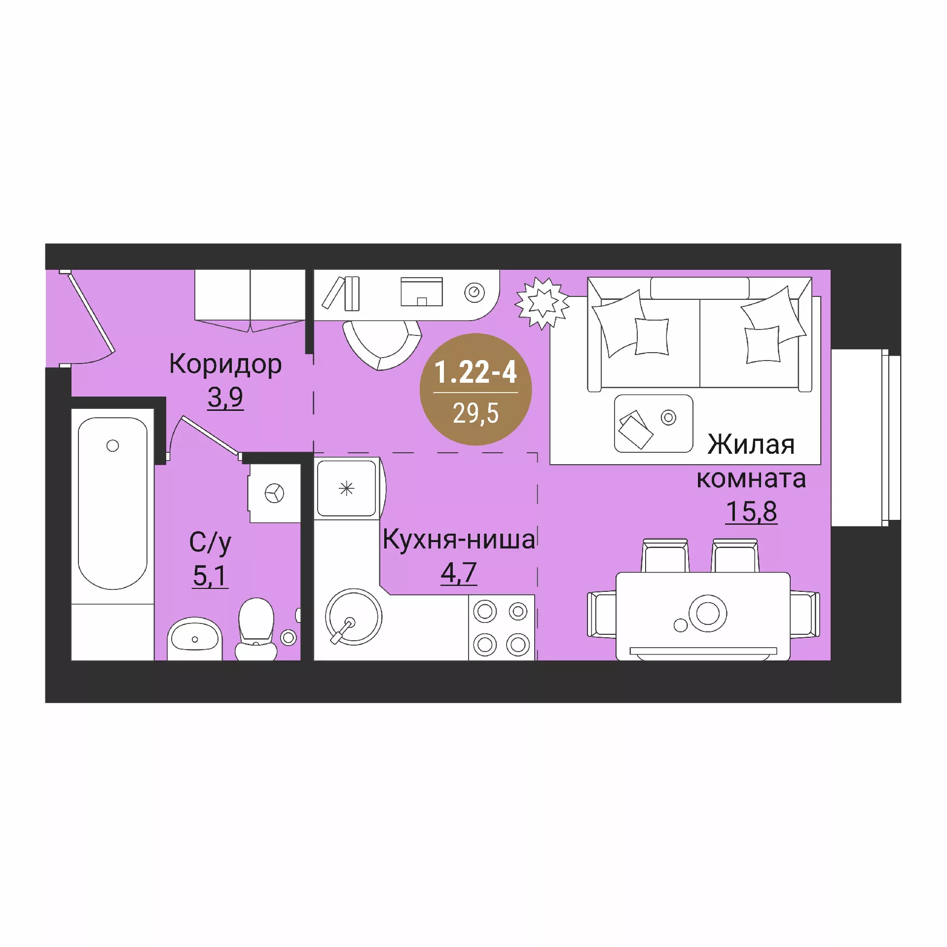 Студия 28.9 м2