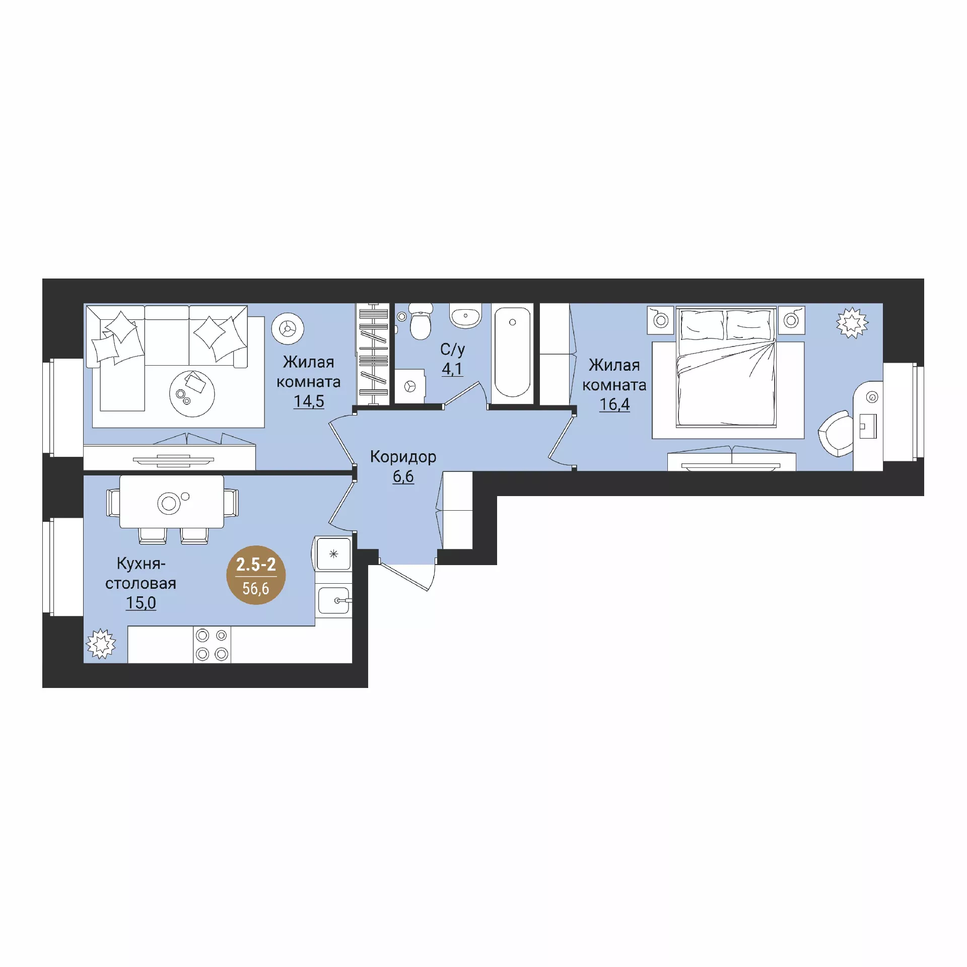 1-х комнатная квартира 36.3 м2