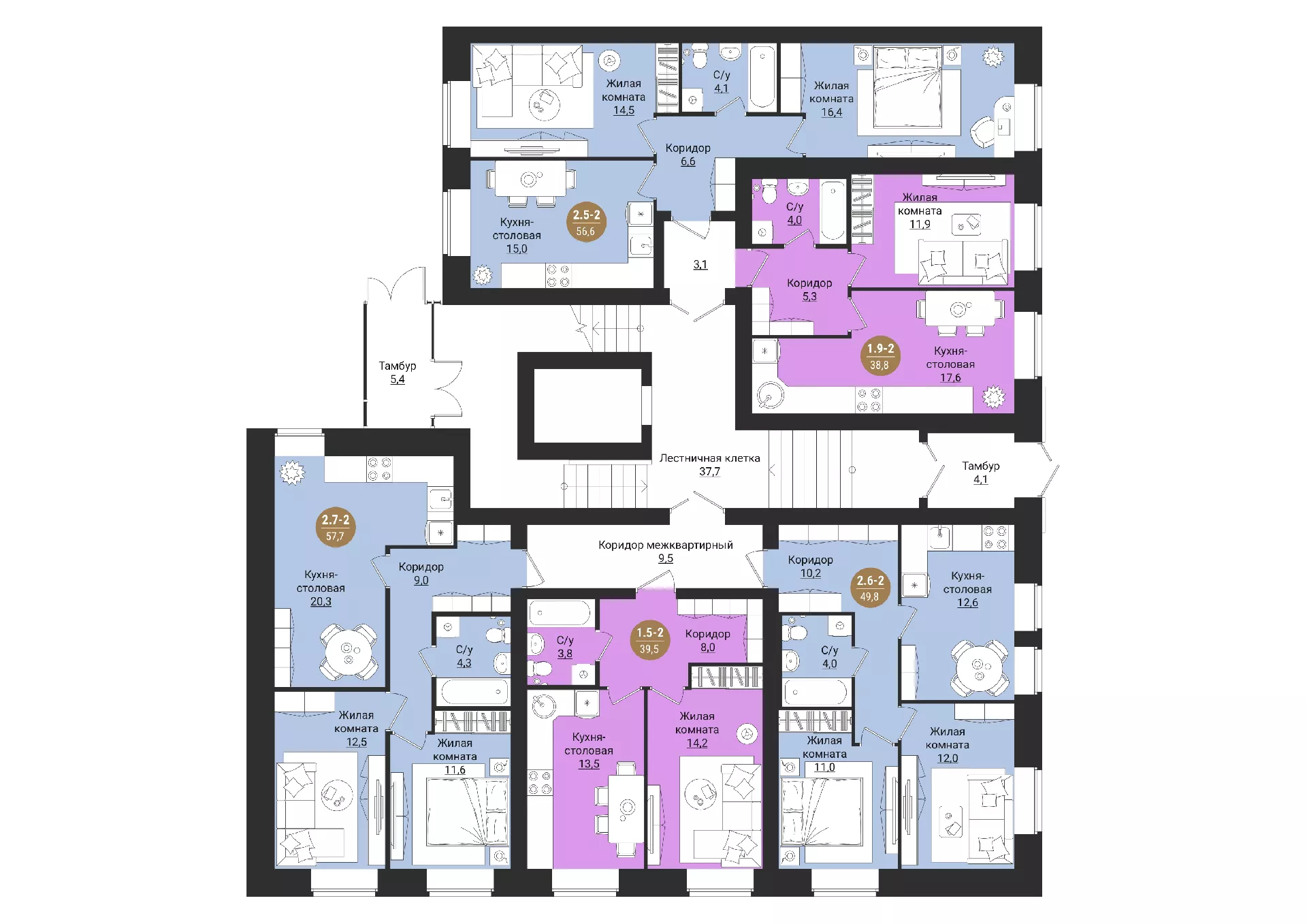 2-х комнатная квартира 56.6 м2